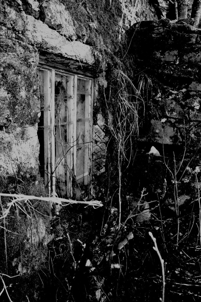 Other buildings are recognisable as sites of human habitation, yet they lack the aura of the hospitable. They sit lifeless and inert. Lost in time. Something of them draws my eye – captures my imagination – though trying to quantify that leaves me conflicted. I came first to look, to gain some sense of how things once were. To try and piece them together stone by stone, story by story – notebook and camera in hand. A kind of salvage – a humble and humbling testimony. When I immerse myself further in this place, and slowly elide with the land and its unwritten song, its uncertain future – I begin to wonder if I can attempt to reclaim a half-imagined past from the material at hand? Could I construct a narrative from such slender threads?
